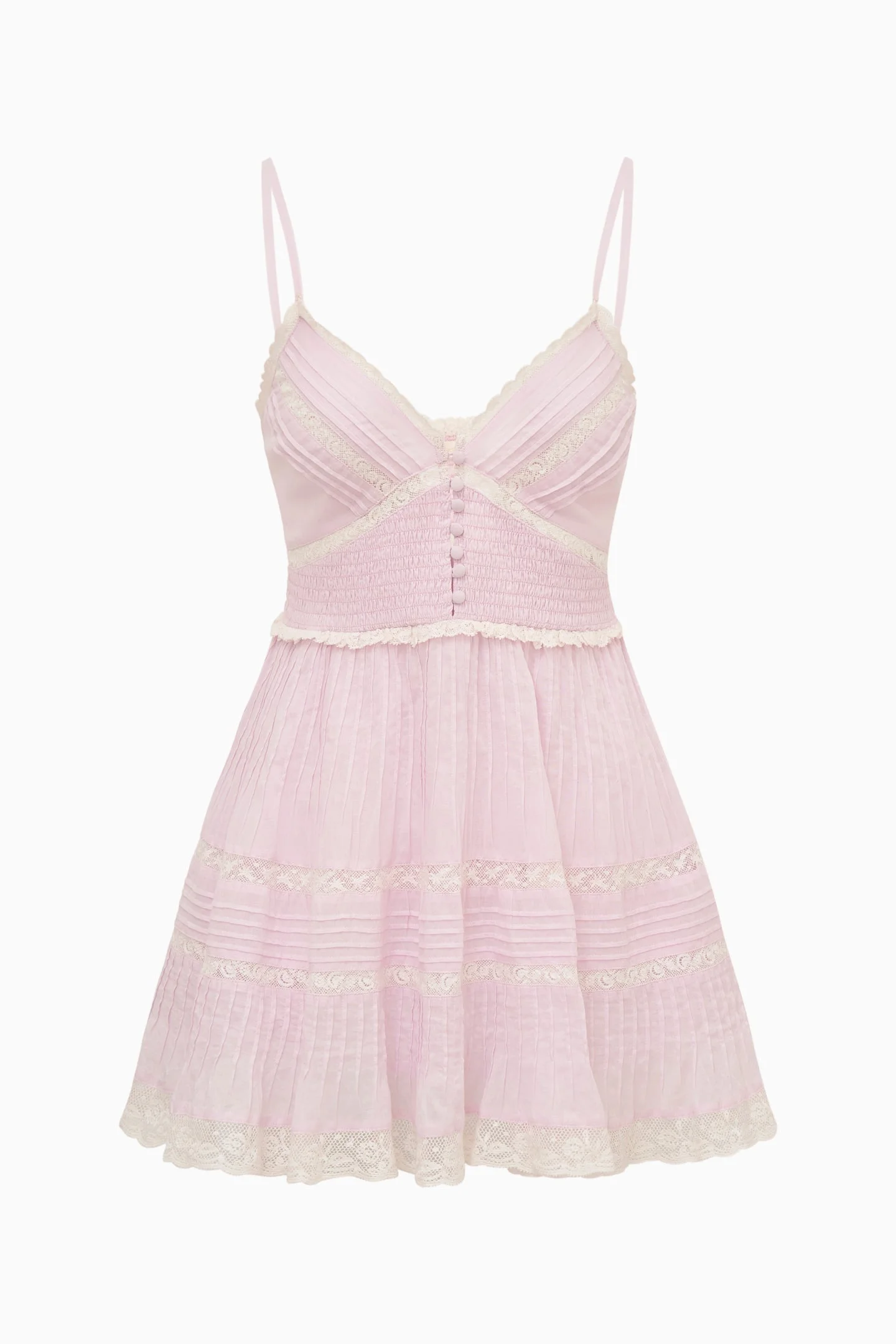 The Krista Dress is made for sunny escapes and warm weather. Designed from a lightweight tissue voile with an ikat-inspired floral, this effortless mini features a smocked waist, delicate spaghetti straps, and a V-neckline framed with pintucks, lace trims, and tiny buttons for a touch of Victorian charm. Finished with a flirty, pull-on skirt—your perfect warm-weather getaway piece. - 100% Cotton - Smocked waist for a comfortable, flattering fit - Spaghetti straps with a feminine V-neckline - Victorian-inspired pintucks and lace trim detailing - Button-front accents at the neckline - Easy pull-on design DETAILS - 100% Cotton - Hand Wash In Cold Water - Do Not Bleach - Lay Flat To Dry - Low Iron SIZE & FIT Measurements based on size S: - Length: 31 1/4" - Strap Length: 14 1/2" - Bust: 30 3/4" - Waist: 27" - High Hip: 36 1/2" - Low Hip: 56" - Sweep: 99"
