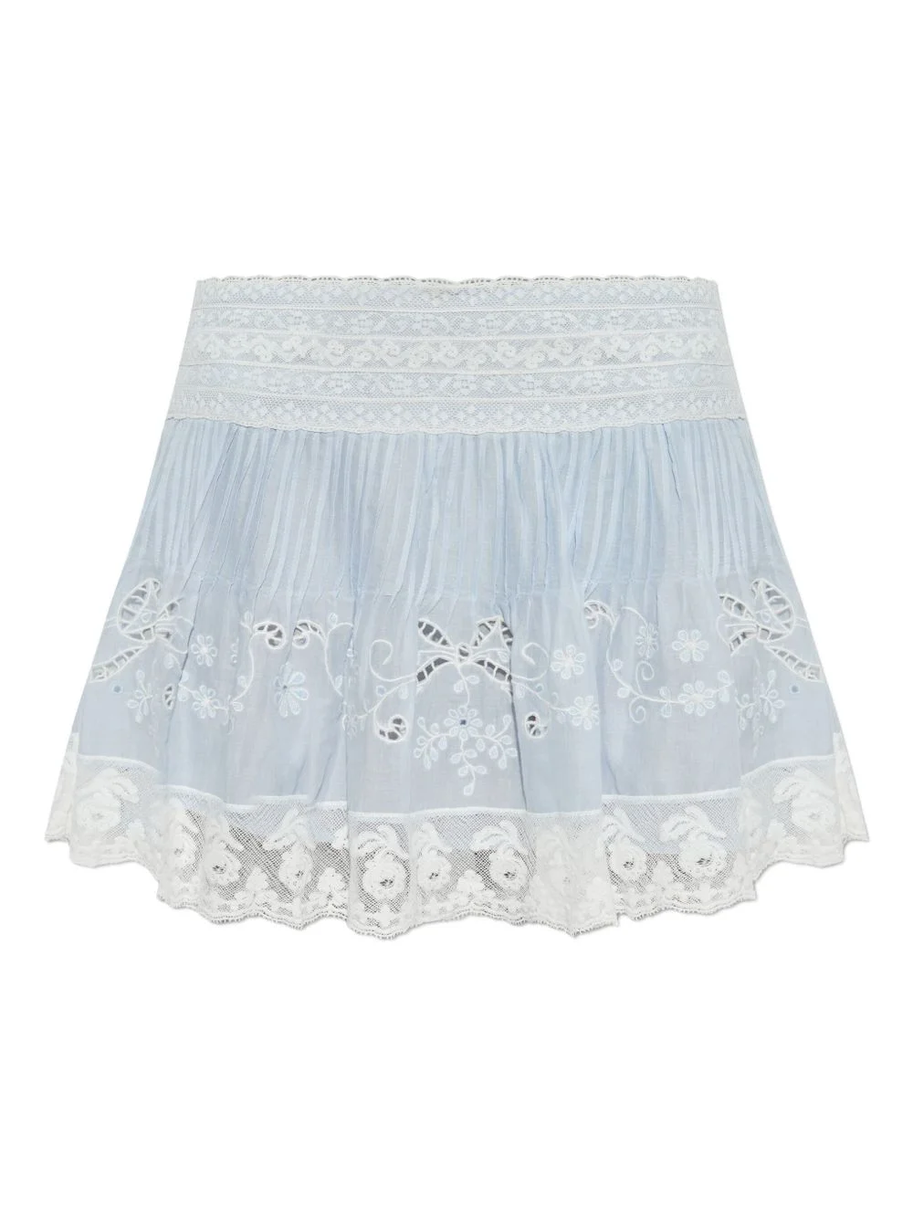 Levant lace-trim mini skirt Highlights - Light blue - Lace trim - Floral embroidery - Elasticated waistband - Tiered design Imported Composition Outer: Cotton 100% Lining: Cotton 100% Washing instructions Read Manufacturer Guidelines