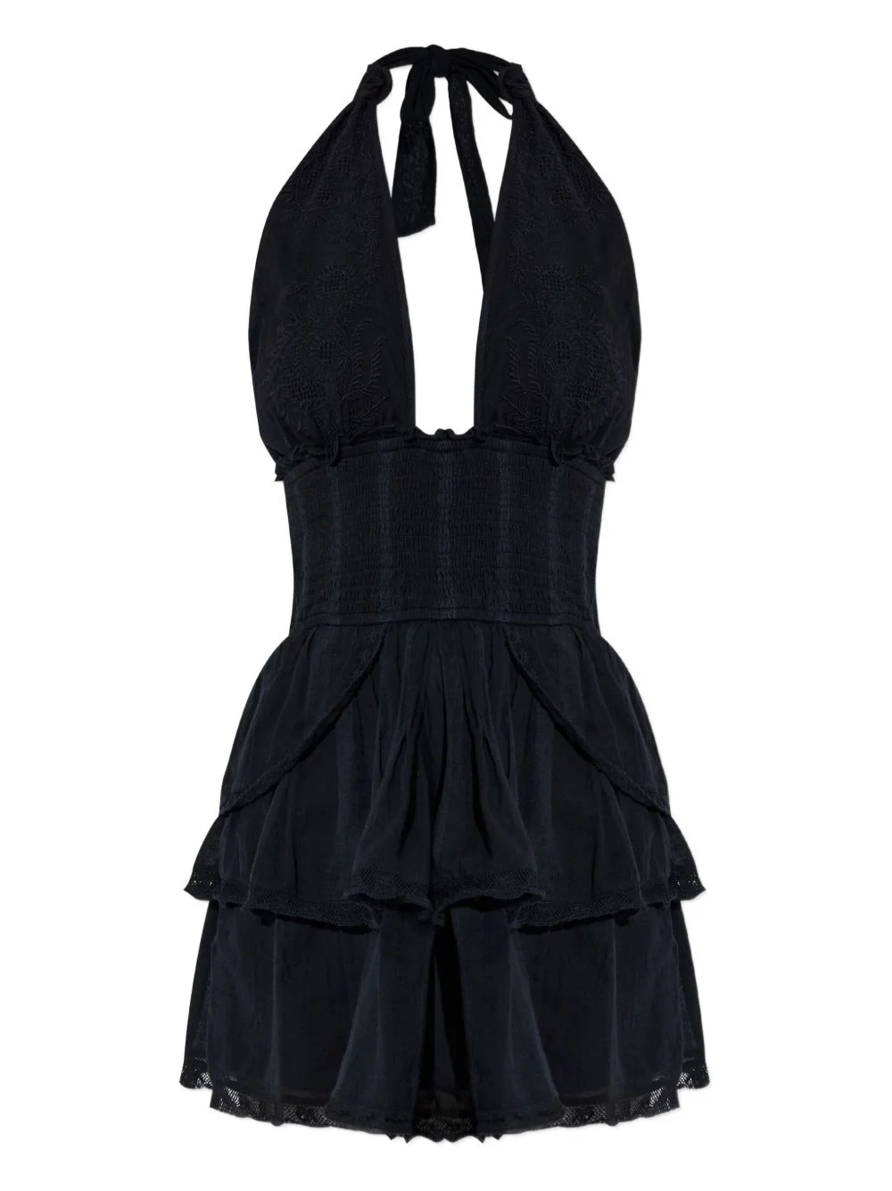Deanna mini dress Highlights - Black - Halterneck tie fastening - Smocked panel - Layered details - Lace trim Imported Composition Cotton 100% Washing instructions Hand Wash