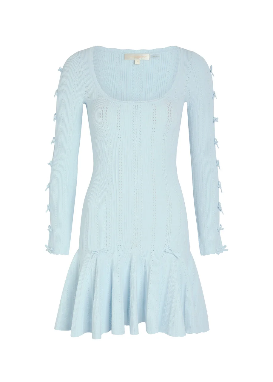 Loveshackfancy Seychelle Bow-appliquéd Pointelle-knit Mini Dress