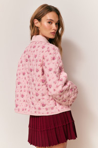 The Quinlette Jacket brings cozy charm to your outerwear rotation with a nod to classic New England style. Crafted in printed Nordic nylon and quilted in a delicate lattice-bow pattern, this medium-weight puffer channels the spirit of vintage hunting jackets with a romantic twist. Slightly boxy and hitting at the hip, it features a corduroy collar, cinched elastic sleeves, and practical waist pockets for warmth and ease. Perfect for crisp fall days, Quinlette blends effortless utility with whimsical LoveShackFancy detailing. - 100% Nylon - Medium weight - Elastic sleeves - Functional pockets DETAILS - Exterior: 100% Nylon - Lining: 100% Cotton - Double Lining: 55% Polyester, 45% Viscose - Filling: 100% Polyester - Dry Clean or Machine Wash In Cold Water, Tumble Dry Low, Cool Iron SIZE & FIT Measurements based on Size S: - Front Jacket Length: 22 1/2" - Back Length: 22 1/2" - Shoulder Width Across: 17 3/4" - Waist: 27" - Bust Circumference: 42 1/2" - Sleeve Length (From Neck): 32 1/2"
