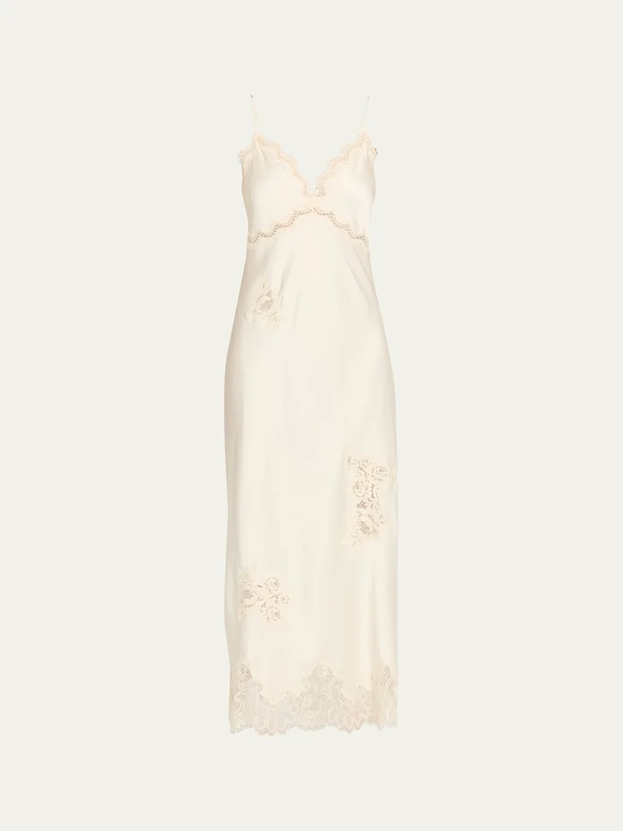 Sorone Satin Lace Maxi Slip Dress