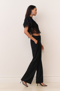 Introducing the Vienne Top. This stunning piece features sheer, lace chiffon all over giving this top a Bohemian-inspired look. With ruffles and layers abound, the top has short sleeves, an open scoop neck, and hits just below the natural waist. - 100% Rayon - Open scoop neck DETAILS - Shell: 100% Nylon - Lining: 100% Polyester - Combo: 100% Polyester - Dry Clean Only SIZE & FIT Measurements based on Size S: - Bust: 47" - Sweep: 52" - Sleeve Length from Shoulder: 7"