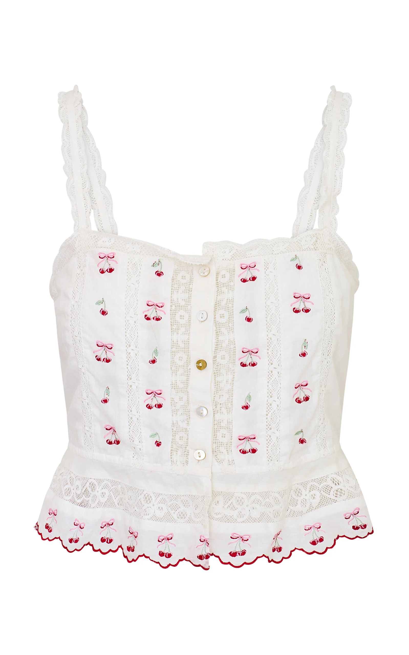 PRODUCT DETAILS - Pre-Fall 2025 - Slim fit, square neckline with thick straps, floral printed throughout, peplum silhouette cropped top - Partially Lined - Composition: 100% COTTON - Front Button Closure - *Dry Clean Only - Made in India