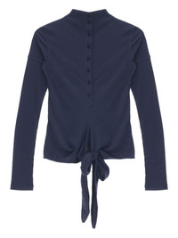 button wrap t-shirt Highlights - Blue - Button fastening - High neck - Long sleeves - Tie detail - Ribbed texture Imported Composition Polyester 61%, Viscose 34%, Elastane 5% Washing instructions Read Manufacturer Guidelines
