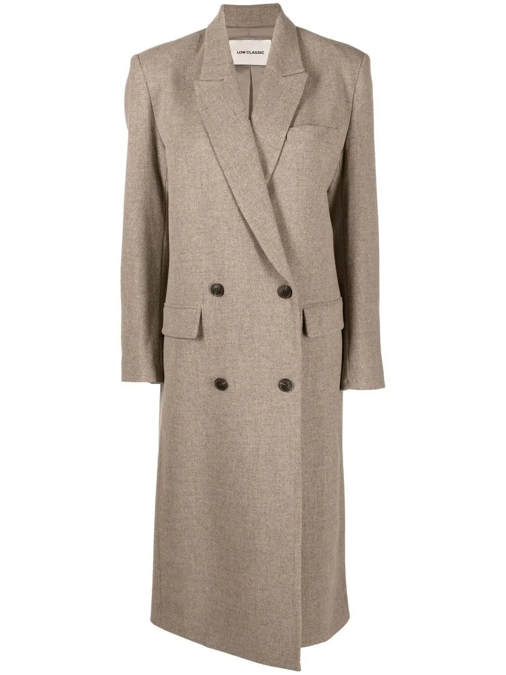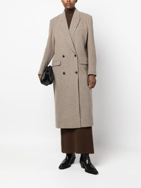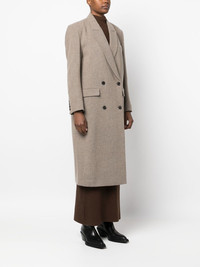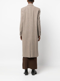 buttoned-up double-breasted coat beige wool blend two side flap pockets chest welt pocket double-breasted button fastening notched lapels long sleeves buttoned cuffs long length straight hem Imported Composition Outer: Wool 78%, Polyamide 9%, Polyester 9%, Lycra 4% Lining: Polyester 100% SIZE & FIT Model measurements Height 5 ft 11 in(1.8 m) Bust/Chest 31.49 in(80 cm) Hips 36.61 in(93 cm) Waist 24.4 in(62 cm) FittingInformation This piece fits true to size. We recommend you get your regular size Cut for a loose fit Made with a mid-weight non-stretch fabric Washing instructions Dry Clean Only