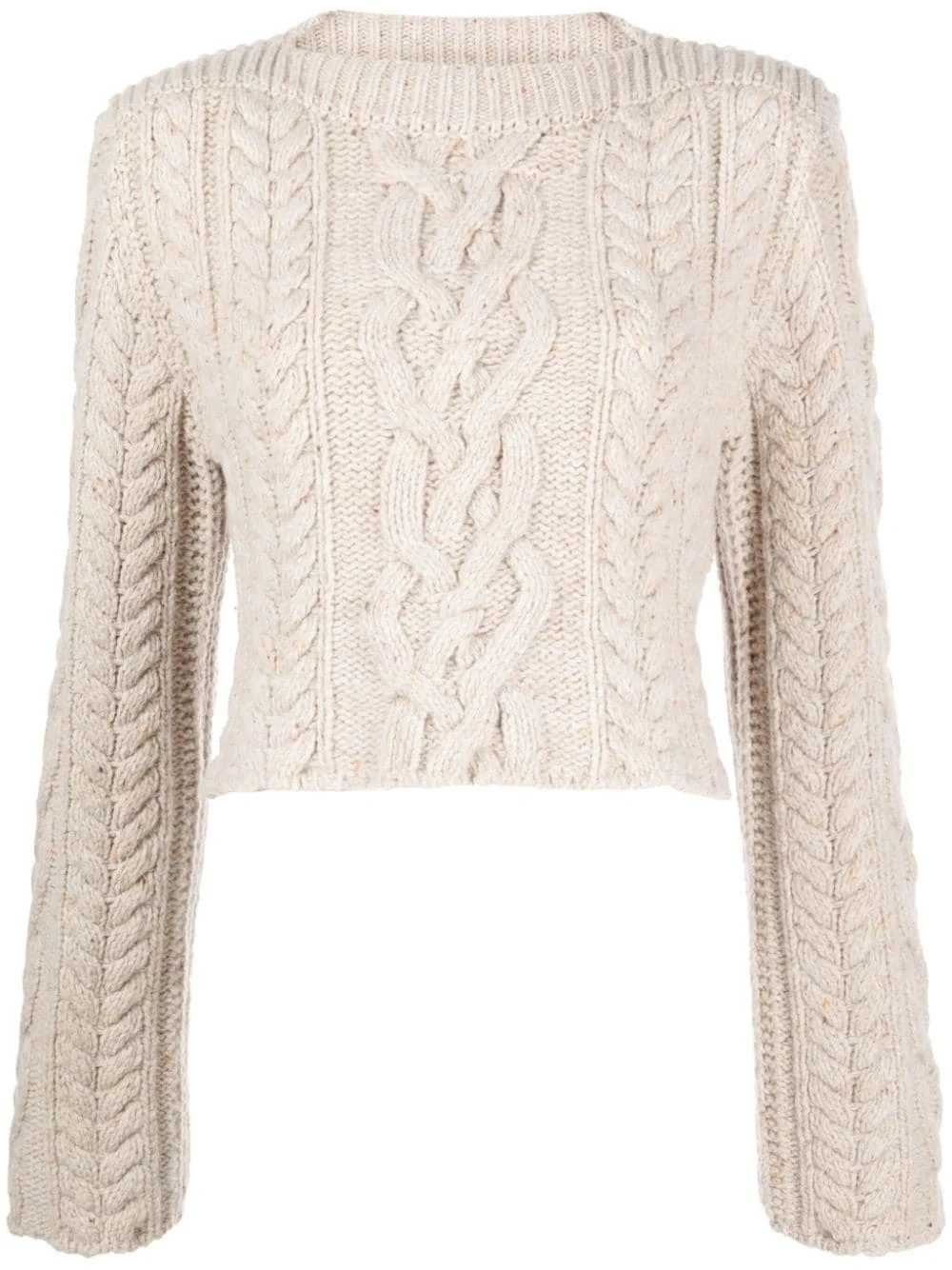 chunky-knit wool blend jumper Highlights - Off-white - Wool blend - Knitted construction - Chunky cable knit - Boat neck - Long sleeves - Straight hem - Cropped Imported Composition Wool 80%, Nylon 20% SIZE & FIT Model measurements Height 5 ft 10 in(1.77 m) Bust/Chest 31.49 in(80 cm) Hips 35.43 in(90 cm) Waist 25.19 in(64 cm) FittingInformation Designed to be unstructured, offering a loose fit throughout Cropped in length Made with a heavyweight knit, this piece offers some stretch This piece fits true to size – take your usual size Washing instructions Dry Clean Only