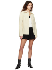 Coated plain-woven slub polyester- and linen-blend jacket. Adjustable press-stud vent at side seams for alternate styling. · Spread collar · Press-stud closure · Patch pockets · Press-stud fastening at cuffs Supplier color: Cream