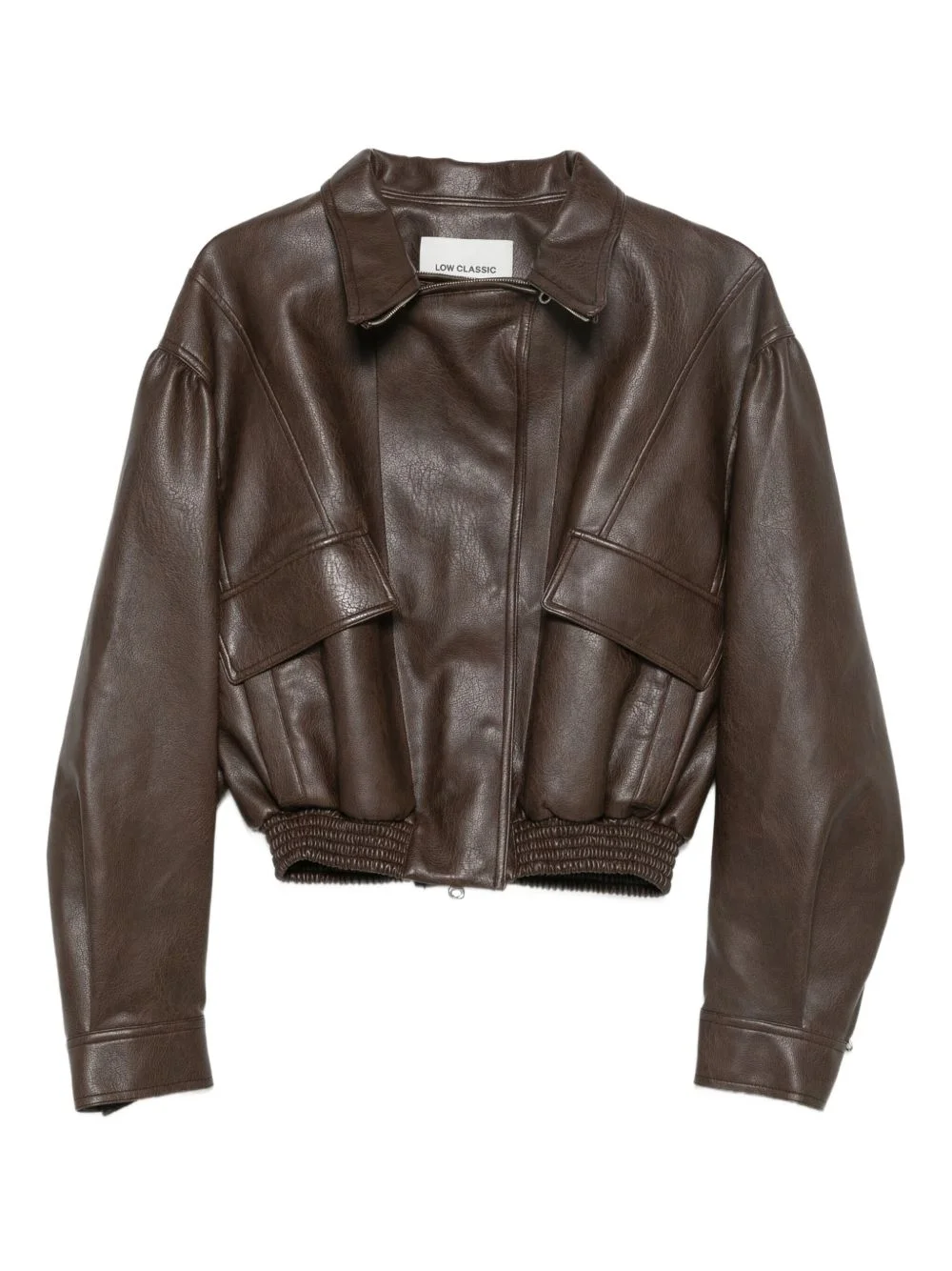 collared bomber jacket Highlights - Brown - Collared - Front flap pockets - Long sleeves - Ribbed hem - Concealed front fastening Imported Composition Polyester 100% SIZE & FIT Model measurements Height 5 ft 10 in(1.77 m) Bust/Chest 32.28 in(82 cm) Hips 35.03 in(89 cm) Waist 25.19 in(64 cm) Washing instructions Read Manufacturer Guidelines