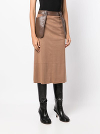 contrasting-panel detail skirt camel brown contrasting panel detail A-line skirt two side inset pockets mid-length Imported Composition Body: Polyester 85%, Polyurethane 15% SIZE & FIT Model measurements Height 5 ft 10 in(1.77 m) Bust/Chest 31.49 in(80 cm) Hips 35.43 in(90 cm) Waist 25.19 in(64 cm) FittingInformation This piece fits true to size. We recommend you get your regular size Designed to be fitted at the waist, loose over the leg Made from supple hide Washing instructions Dry Clean Only