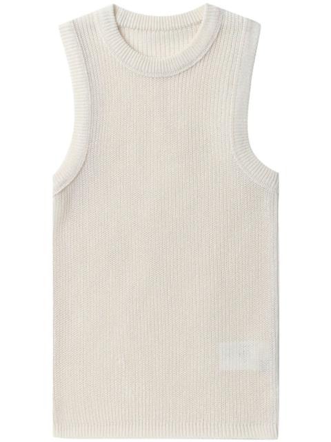 crew-neck sleeveless knitted top Highlights - Cream white - Knitted construction - Semi-sheer construction - Crew neck - Sleeveless - Ribbed hem Imported Composition Rayon 84%, Nylon 16%