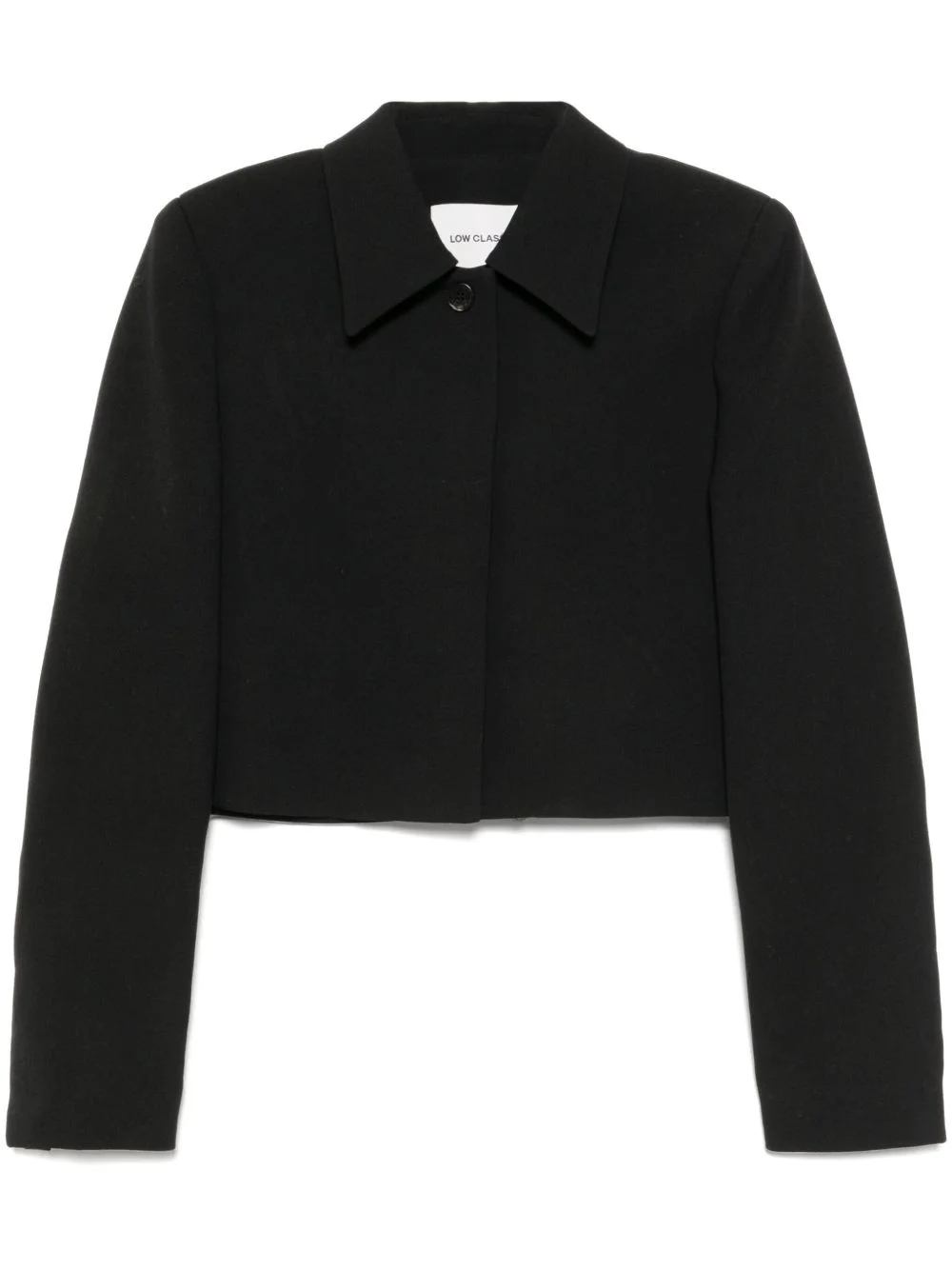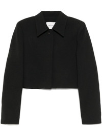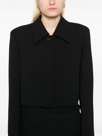 classic short jacket Highlights - Black - Concealed front button fastening - Classic collar - Shoulder pads - Long sleeves Imported Composition Lining: Polyester 100% Outer: Wool 100% SIZE & FIT Model measurements Height 5 ft 9 in(1.76 m) Bust/Chest 31.1 in(79 cm) Hips 35.03 in(89 cm) Waist 24.4 in(62 cm) FittingInformation Designed for a boxy fit, intended for a loose fit throughout The internal shoulder pads offer a structured shape Made from a midweight non-stretch fabric