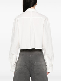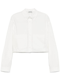 cropped top Highlights - White - Front button placket - Button-down collar - Buttoned cuffs - Box-pleat detail Imported Composition Cotton 98%, Polyurethane 2% SIZE & FIT Model measurements Height 5 ft 10 in(1.78 m) Bust/Chest 33.46 in(85 cm) Hips 36.22 in(92 cm) Waist 23.22 in(59 cm) FittingInformation Designed to be unstructured, offering a loose fit throughout Made from a midweight non-stretch fabric, this piece offers minimal elasticity when worn