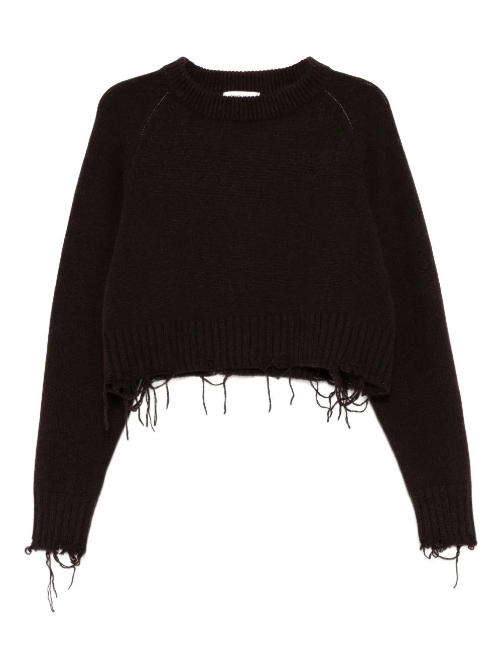 ribbed jumper Highlights - Dark brown - Crew neck - Ribbed cuffs and hem - Raw-cut hem Imported Composition Wool 53%, Nylon 45%, Cashmere 2% Washing instructions Dry Clean Only
