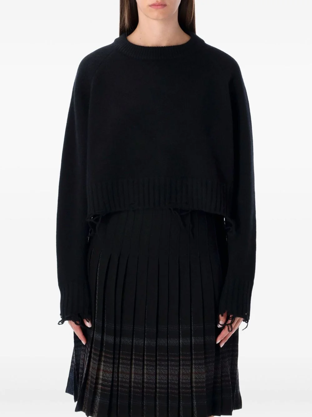 distressed sweater Highlights - Black - Ribbed hem - Drawstring detail - Round neck - Long sleeves - Frayed edges Imported Composition Wool 53%, Nylon 45%, Cashmere 2% Washing instructions Dry Clean Only