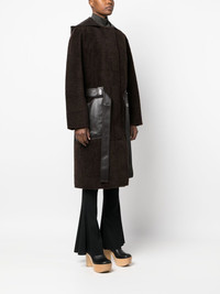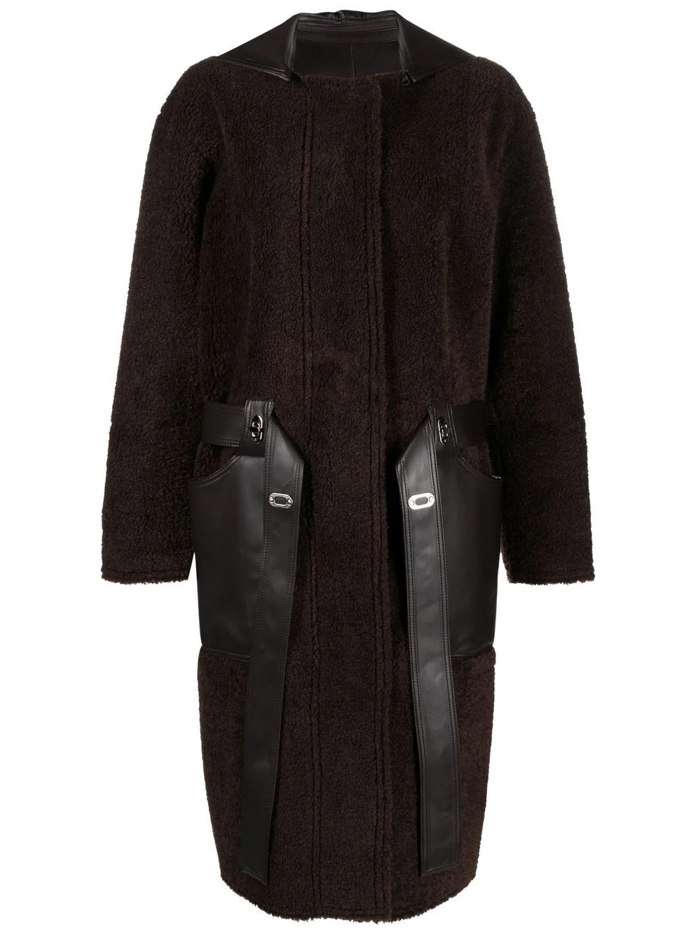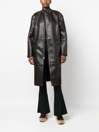 faux-leather zip-up coat jet black faux leather faux-shearling lining round neck front press-stud and zip fastening long sleeves two side slit pockets straight hem reversible Imported Composition Outer: Polyester 100% Lining: Polyurethane 100% SIZE & FIT Model measurements Height 5 ft 11 in(1.8 m) Bust/Chest 31.49 in(80 cm) Hips 36.61 in(93 cm) Waist 24.4 in(62 cm) FittingInformation This piece fits true to size. We recommend you get your regular size Cut for a loose fit. Comes with an adjustable belt for a flexible fit at the waist Made with a mid-weight non-stretch fabric Washing instructions Dry Clean Only