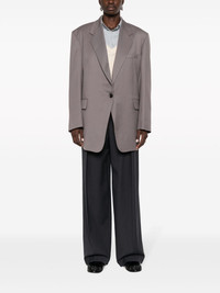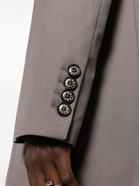 notched-lapel single-breasted jacket Highlights - Taupe grey - Wool blend - Notched lapels - Front button fastening - Long sleeves - Buttoned cuffs - Chest welt pocket - Two side flap pockets Imported Composition Outer: Wool 58%, Polyester 42% Lining: Polyester 100% SIZE & FIT Model measurements Height 5 ft 10 in(1.77 m) Bust/Chest 32.28 in(82 cm) Hips 35.03 in(89 cm) Waist 25.19 in(64 cm) FittingInformation Designed to be unstructured, offering a loose fit throughout The internal shoulder pads offer a structured shape Made from a midweight non-stretch fabric This piece fits true to size – take your usual size Washing instructions Dry Clean Only