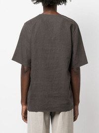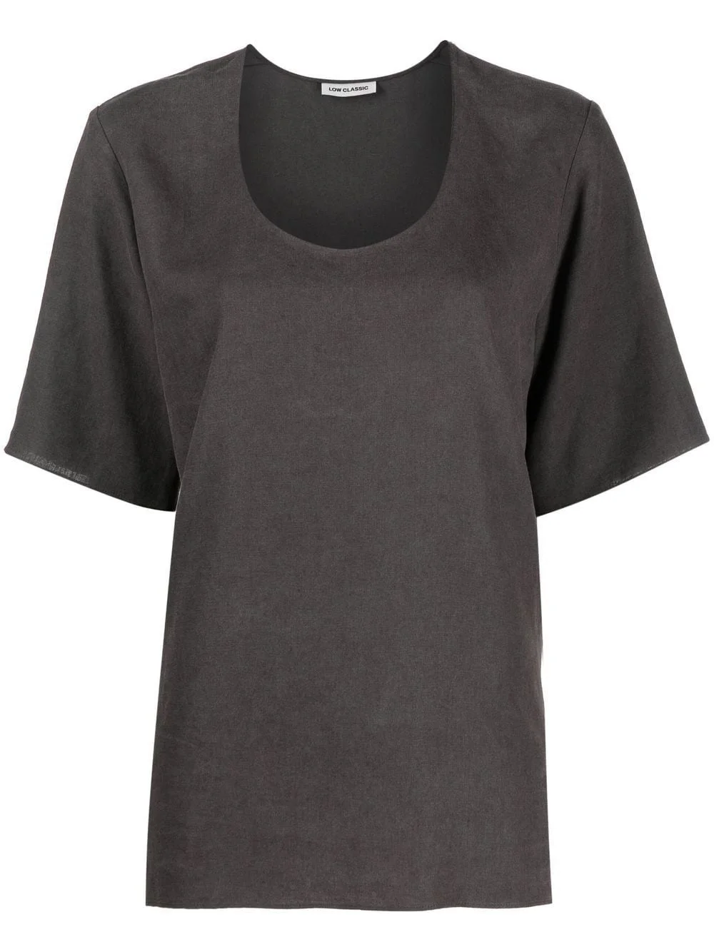 scoop-neck short-sleeve T-shirt Highlights - Charcoal grey - Tencel™-linen blend - Scoop neck - Drop shoulder - Short sleeves - Straight hem Imported Composition TENCEL™ 60%, Linen/Flax 40% SIZE & FIT Model measurements Height 5 ft 10 in(1.77 m) Bust/Chest 29.92 in(76 cm) Hips 34.25 in(87 cm) Waist 23.62 in(60 cm) FittingInformation This piece fits true to size. We recommend you get your regular size Cut for a loose fit Made with a mid-weight non-stretch fabric Washing instructions Dry Clean Only
