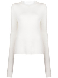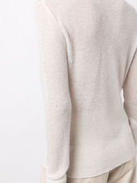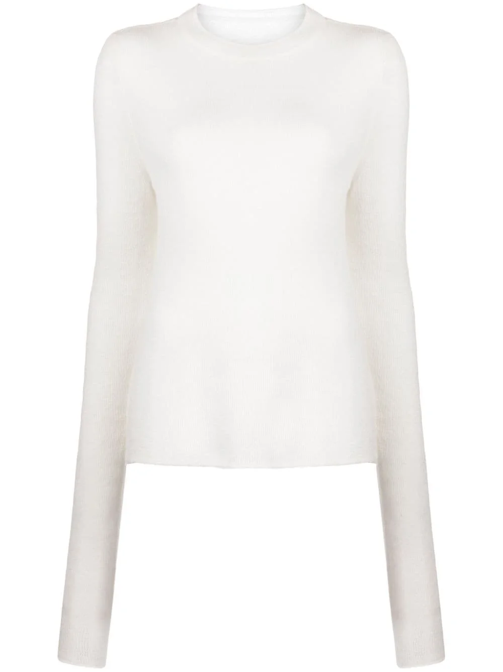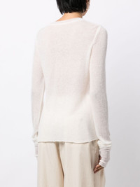 semi-sheer fine-knit jumper Highlights - Cream white - Mohair-wool blend - Fine knit - Semi-sheer construction - Crew neck - Extra-long sleeves - Stirrup cuffs - Raw-cut edge Imported Composition Mohair 42%, Nylon 41%, Wool 17% SIZE & FIT Model measurements Height 5 ft 10 in(1.77 m) Bust/Chest 31.49 in(80 cm) Hips 35.43 in(90 cm) Waist 25.19 in(64 cm) FittingInformation Designed for a slim fit that sits just away from the body offering a close yet comfortable fit Made with a fine knit, this piece offers some stretch This piece fits true to size – take your usual size Washing instructions Machine Wash