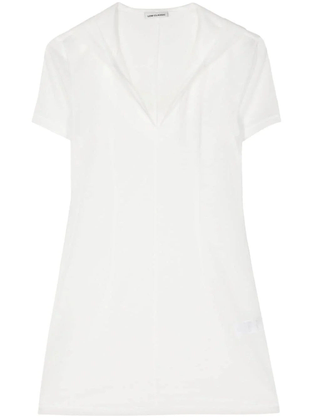 semi-sheer hoodie Highlights - White - Semi-sheer construction - Slouchy hood - V-neck - Short sleeves - Straight hem Imported Composition Polyester 100%