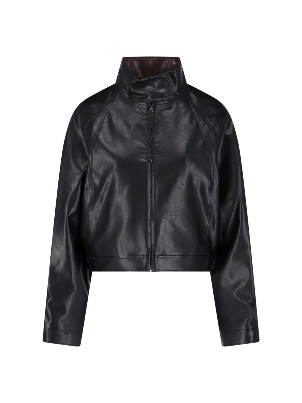 LOW CLASSIC 'STAND COLLAR' BLACK ECO-LEATHER JACKET WITH HIGH NECK, ZIP CLOSURE, LONG SLEEVES, TWO SIDE ZIP POCKETS. PRODUCT INFO PRODUCT CODE LCPS26JJ011470015 COMPOSITION: 100% POLYURETHANE SIZE AND FIT: REGULAR FIT MADE IN: SOUTH KOREA