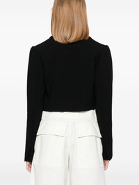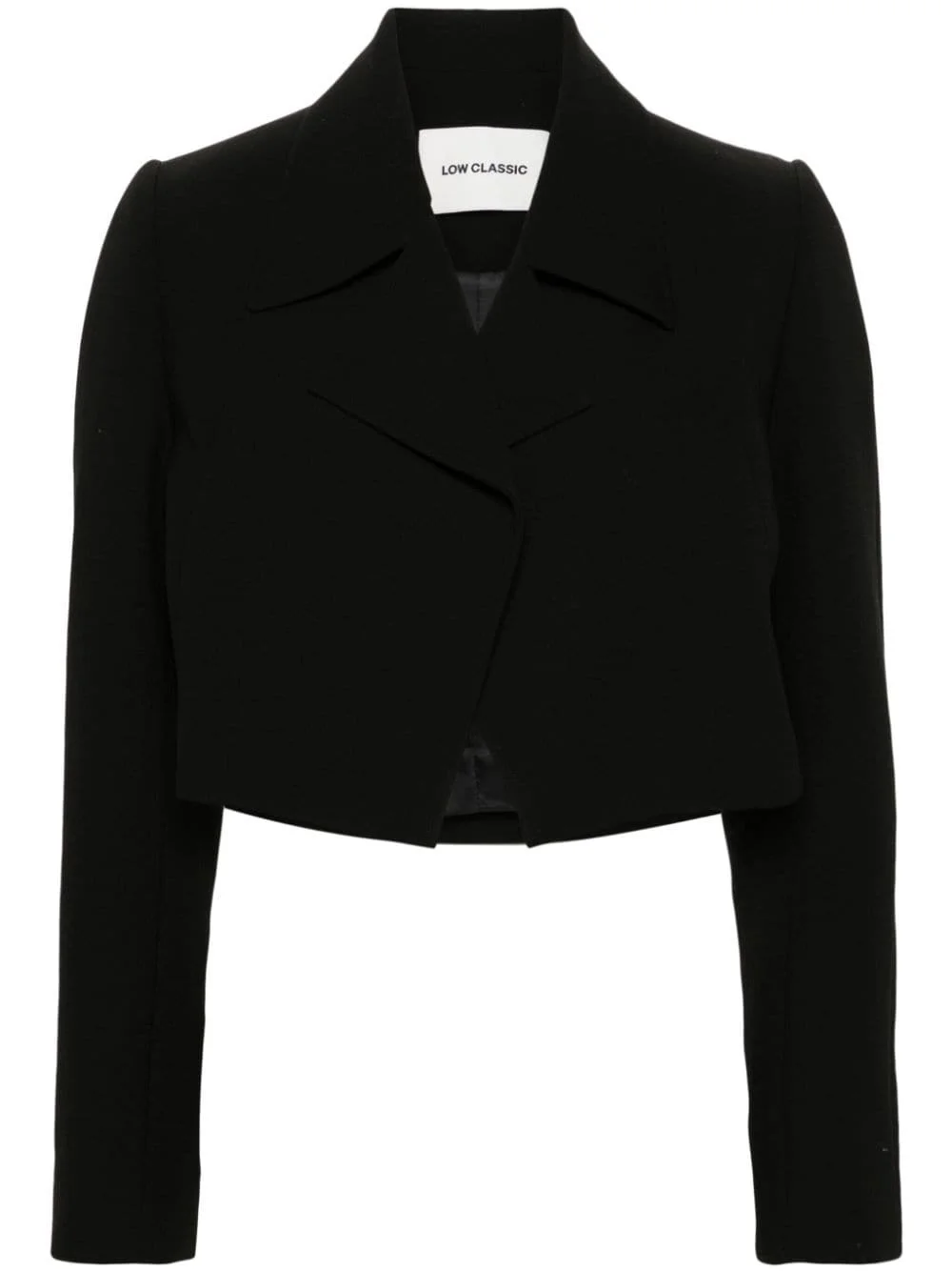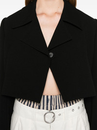 cropped blazer Highlights - Black - Wool - Notched lapels - Shoulder pads - Long sleeves - Split cuffs - Cropped - Full lining - Straight hem - Front button fastening Imported Composition Outer: Wool 100% Lining: Polyester 100% SIZE & FIT Model measurements Height 5 ft 9 in(1.75 m) Bust/Chest 31.88 in(81 cm) Hips 34.64 in(88 cm) Waist 24.01 in(61 cm) FittingInformation Designed to be unstructured, offering a loose fit throughout The internal shoulder pads offer a structured shape Made from a midweight non-stretch fabric This piece fits true to size – take your usual size