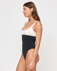 Always classy and chic, our black and cream colorway is on the scene with the Descanso One Piece. This onesie features a sweetheart neckline, wide straps and an adjustable tie in the back that shows a perfect little peek of skin. An inner mesh lining provides shaping and classic coverage ensures the perfect level of cheekiness. - Colorblock - Sweetheart Neckline - Wide Straps - Adjustable Tie At Back - Classic Coverage - Inner Mesh Lining For Shaping - XS-XL - 82% Nylon, 18% Spandex FIT - Model Measurement: Maitlynn, size S - Height 5'9, Bust 34", Waist 24", Hips 35"