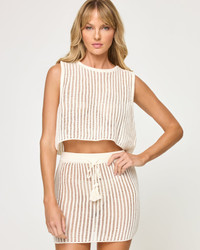 As easy to wear as she looks, the Sander Skirt is a crochet knit mini skirt with a tie at the waistband. Wear it as a set with the Sander Top. - Crochet Knit - Mini Skirt - Tie At Waistband - Size XS-XL - 100% Cotton - Style #SANSK25 FIT - Model Measurements: Lura, size S - Height 5'9, Bust 32", Waist 24", Hips 34"