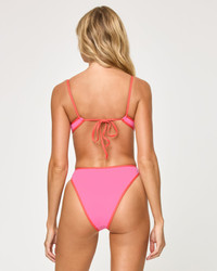 Eat up those compliments in the Zella Top. This bralette style bikini top combines shirring at the front with an adjustable tie back. Our legendary colorblock binding is the icing on the cake. - Bralette - Shirring at front - Adjustable tie at back - Colorblock binding - 82% Nylon, 18% Spandex - Style # LSZET25 FIT - Coverage: Minimal - Support: Medium - Model Measurements: Lura, size S - Height 5'9, Bust 32", Waist 24", Hips 34"