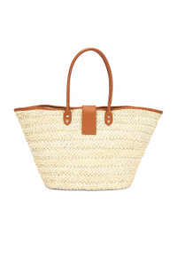 - Straw exterior with faux leather trim and textile lining - Made in China - Foldover faux leather strap with magnetic button closure - One main compartment - Interior slip pocket - Dual faux leather shoulder straps - Measures approx 14" W x 14" H x 6" D Shoulder strap with a 9.5" drop - Revolve Style No. LSPA-WY44 - Manufacturer Style No. LSALF24