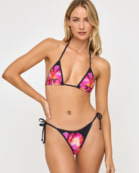 Our classic, bestselling triangle top got a glow up with our special-edition floral graphic print we're calling Midnight Hibiscus. The Aspen is a versatile bikini that has ties around the neck and back so you can style it multiple ways. Wear this iconic piece with any of the coordinating bottoms from this vibey collection. - Triangle Top - Halter Tie Around Neck - Tie Around Back - 83% Micro Nylon, 17% Spandex - Style # LSAST23P FIT - Support: Minimum Coverage: Minimum - Lura is wearing size S | Height 5'9, Bust 32", Waist 24", Hips 34"