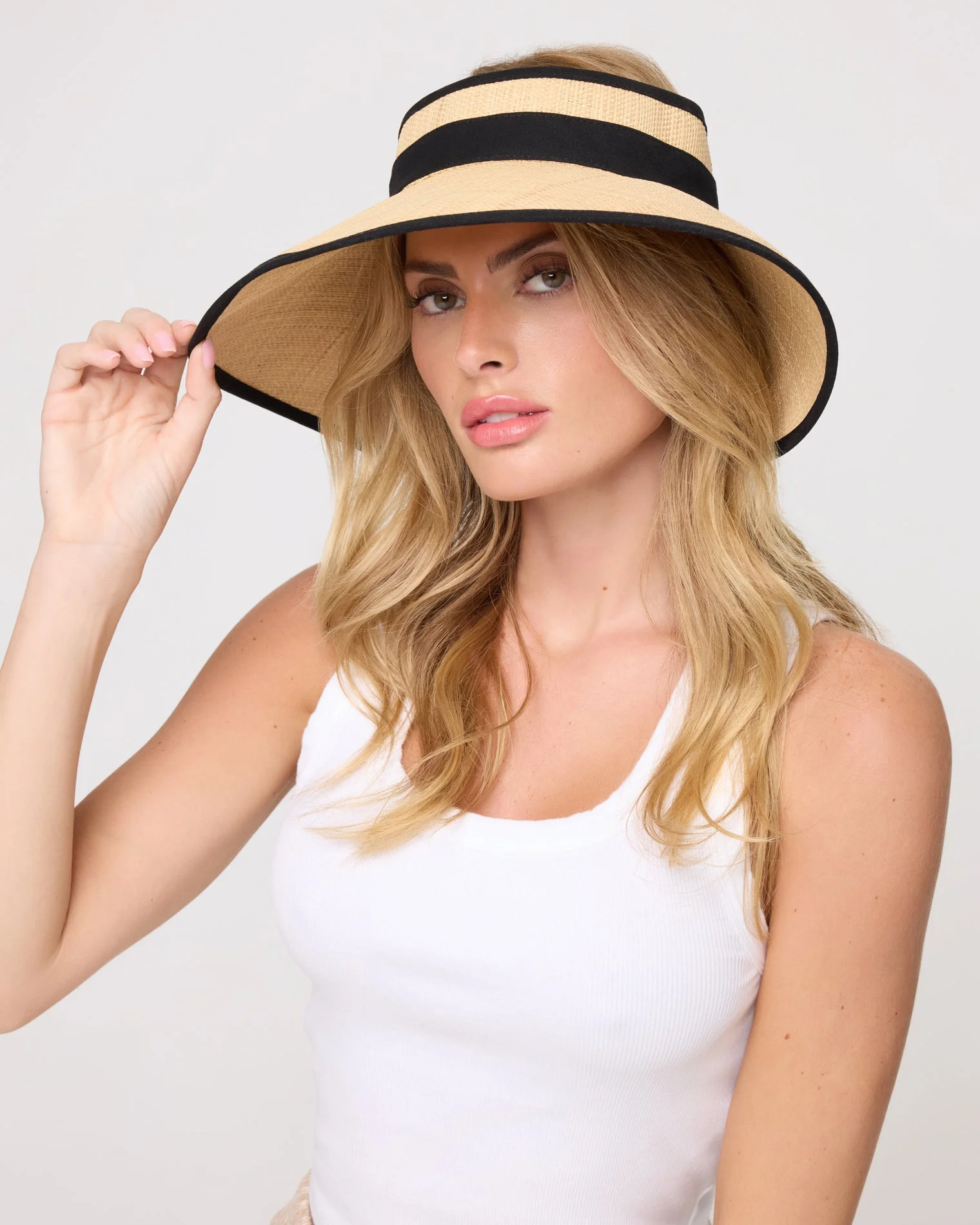 Worried about completely squishing your hat on your next travel adventure? Us too. That's why we created the Castello Roll-Up. This packable straw visor has a wide brim and black trim that brings a polished sophistication to any outfit or swimwear style. - Roll up hat - Black trim - One Size - 100% straw - Style # LSCAS25