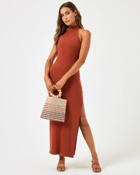 The Cherie is not your average ribbed dress. We maximized the style with this ankle-length midi and included a polished mock neck, sleeveless silhouette and perfectly-placed slit at the thigh. - Mockneck - Sleeveless - Ribbed - Ankle Length Dress - Slit At Thigh - 92% Viscose 8% Elastane - Like all delicates, shape, color and fit are best preserved if hand washed in cold water. Lay flat to dry. - Style # CHEDR24 FIT - Model Measurements: Anna, size S - Height 5'9, Bust 32", Waist 23", Hips 34.5"