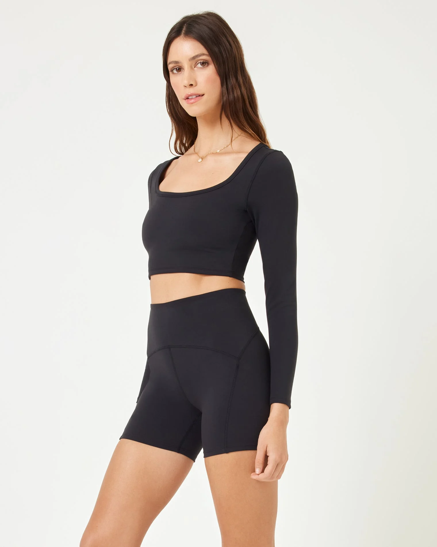 Perfectly polished and pulled together, the En Pointe Top is the epitome of a classic athleisure look. A cropped, long sleeve silhouette combines with compression for a fully functional scoop neck pick that works for fitness or fun. - Impact / support level - : Low - Activity type - : Pilates, Yoga, Coffee Walks - Scoop Front - Long Sleeve - Cropped - Twist Front - Moisture Wicking - Antimicrobial - UV Protection - Odor Resistant - Size XS-XL - 70% POLYESTER 30%SPANDEX - Style #AENPTP25 FIT - Model Measurements: Kristen, size S - Height 5’9.5”, Bust 30, Waist 24, Hips 35.5