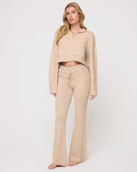 We're making loungewear luxe again. The Jet Set Pants will have you going places in comfort and style. These high-waisted baby boot cut pants have a slim leg and drawstring waist. Wear them with the matching hoodie for errands, travel or your next coffee date. FIT - Model Measurements: Madison, size S - Height 5’9”, Bust 34", Waist 23 1/2", Hips 35"