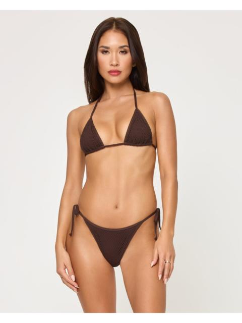 Get tied up in the Levy Bikini Bottom -- this bestseller is now here with our new ocean-inspired blue colorway. Bitsy coverage and fun little side ties combine for a fresh take on a signature fit. - Bitsy coverage - Mid rise - High leg - Tie side - Crochet net overlay - 100% Cotton FIT - Coverage: Bitsy - Model Measurements: Lura, size S - Height 5'9, Bust 32", Waist 24", Hips 34"