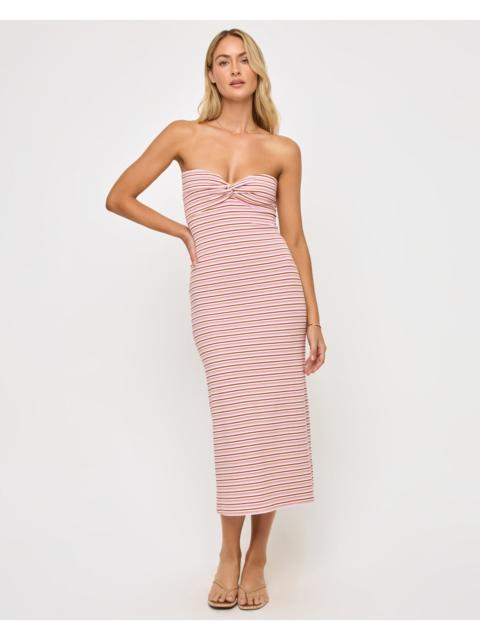 Our iconic ribbed material makes up this strapless midi that features a cute little twist at the front. Rubber at the bust ensures things don't slip and slide while you're having all the fun. - Strapless - Twist Front - Midi Length - Rubber At Bust - XS-XL - 90% Viscose, 10% Elastane