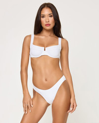 The Mako top features underwire cups and thick straps that tie in the back. Wear this with one of the coordinating bikini bottoms from our sensual solids color collection. - Underwire - Criss-cross back - Size XS-DD - Fabric Content: 80% NYLON 20% SPANDEX - Unsure of your size? No worries! We recommend sizing up in our swim to get that perfect, feel-good fit. - Style # LSMAT25 FIT - Coverage: Maximum - Support: Maximum - Adjustability: Ties in back - Model Measurements: Jocelyn, size S - Height 5’9”, Bust 32", Waist 24", Hips 34"