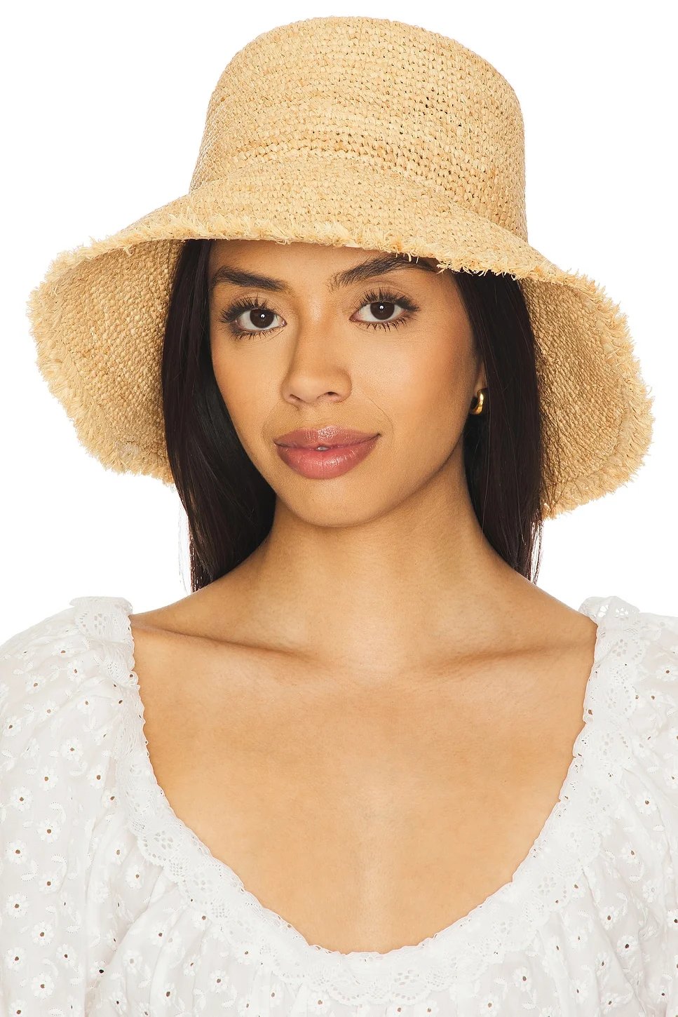- 100% raffia - Spot clean only - Fringed brim - Brim measures approx 4" in length OS measures approx 23" in circumference - Revolve Style No. LSPA-WA89 - Manufacturer Style No. LSPAC25
