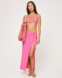 Ya'll love our sarongs and we've gone and made a good thing even better. Introducing the Portela Sarong. This elevated maxi is as functional as it is beautiful thanks to its elongated ties and ability to be packed into your carry-on. - Wrap front - Long ties - Open front - Maxi skirt - Size XS-XL - Fabric Content: 100% viscose FIT - Length for size small - 40" - Model Measurements: Jocelyn, size S - Height 5’9”, Bust 32", Waist 24", Hips 34"