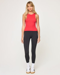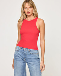 Take it back with retro styling made new with the Rewind Tank. Muscle sleeves, a fitted body and crop style give this tank some edge. Pair with your fave denim for an effortless everyday look. - Tank - High neck - Wide racerback - Ribbed - Size XS-XL - 95% Cotton, 5% Spandex - Style # REWTP25 FIT - Model Measurements: Lura, size S - Height 5'9, Bust 32", Waist 24", Hips 34"