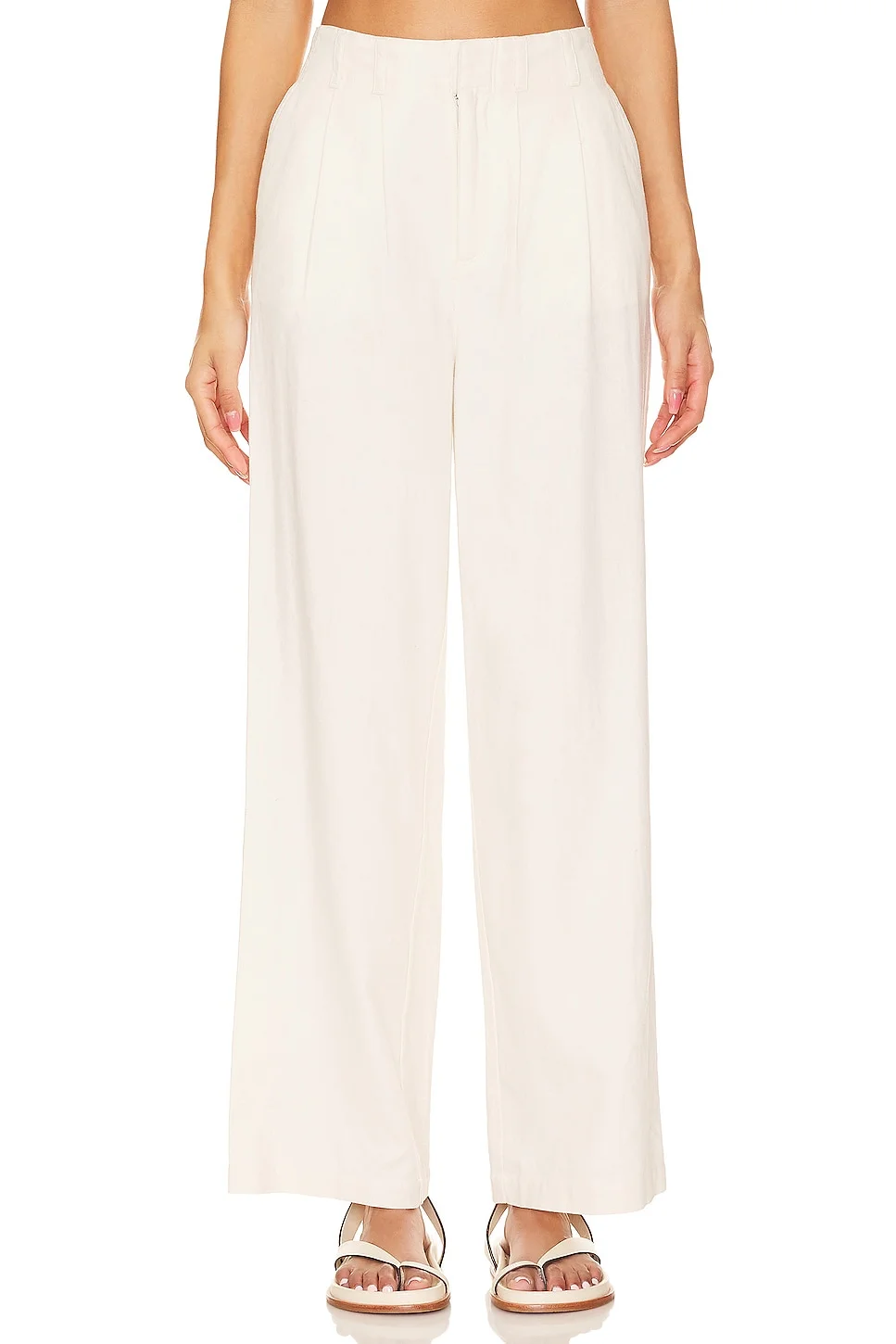 - 55% linen 45% cotton - Made in China - Hand wash - Zip fly with hook and bar closure - Side seam pockets - Linen twill fabric.20" at the knee and 20" at the leg opening - Revolve Style No. LSPA-WP68 - Manufacturer Style No. RHOPA23