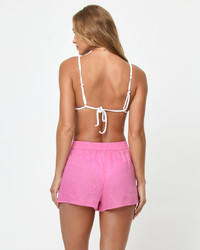 These linen pull-on shorts are the epitome of classic style. An adjustable tie waist and pockets are just a few of the reasons we keep reaching for these closet staples. Pair them with the matching tunic in the latest drop of "Hottest Pink" for a polished yet relaxed set. - Pull on Shorts - Adjustable Tie Waist - Side Pockets - 100% Linen - Style # RIOSH23 FIT - Cat is wearing size S | Height 5’9”, Bust 32", Waist 24", Hips 36"