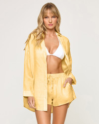 Tailored, refined details pair up with an oversize silhouette to make your new favorite shirt. The Rio Tunic is an essential part of any capsule wardrobe. Wear it as a set with the matching shorts or pop it over your bikini for a quick cover-up. - Button Down Collared Shirt - Cuffs With Buttons - Oversized Relax Fit - Size XS/S, M/L, XL - 100% Linen - Style # RIOTU23 FIT - Model Measurements: Lura, size S - Height 5'9, Bust 32", Waist 24", Hips 34"