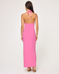 Tie things up in the Skye dress. This ankle-length midi has a hot little halter neckline with ties and a leg slit that brings it all together. - Halter - Tie at neck - Leg slit - Ankle length - 90% Viscose 10% Elastane - Style # SKYDR25 FIT - Model Measurements: Jocelyn, size S - Height 5’9”, Bust 32", Waist 24", Hips 34"