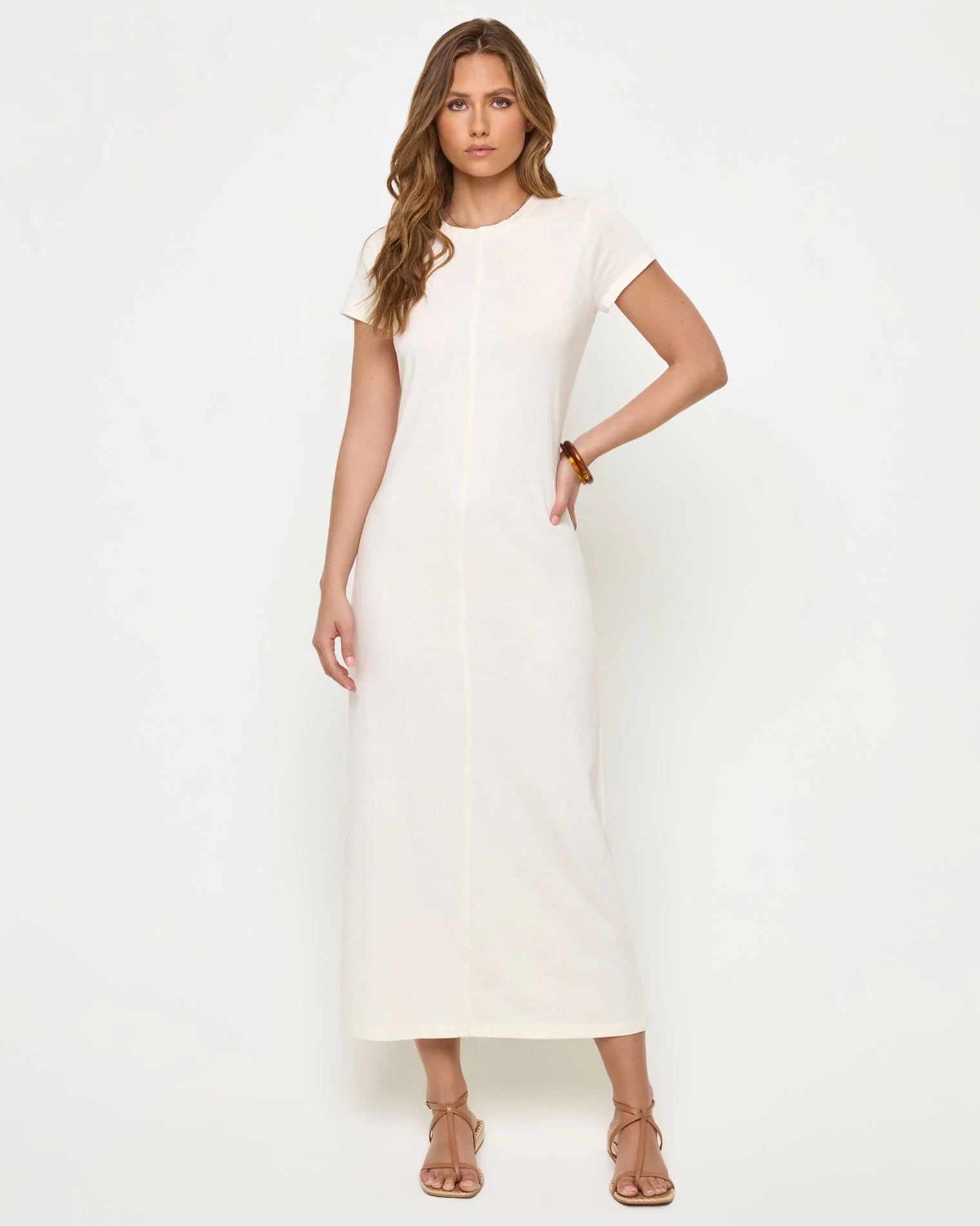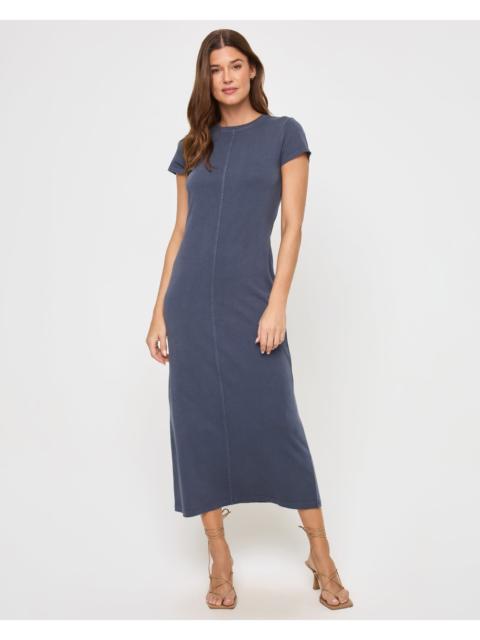 The Sloane Dress has you covered with an ideal mix of casual and comfort. This dress has cap sleeves, a crew neckline, and midi length. Pair with sneakers for a an on-the-go look. - Midi Length - Crew Neckline - Front Seam - Cap Sleeve - 100% Cotton - Style # SLODR25 - 100% Cotton
