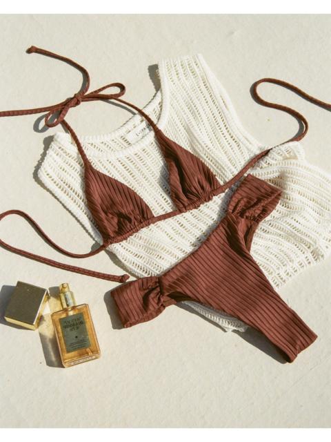 - Triangle Top - Adjustable Tie At Neck - Back Tie - Eco Rib Fabric - Fabric Content: 85% Recycled Polyamide | 15% Spandex - Unsure of your size? No worries! We recommend sizing up in our swim to get that perfect, feel-good fit. - Style # EOSOT25 FIT - Coverage: Minimal - Support: Minimal - Adjustability: Adjustable Tie At Neck and Back - Model Measurements: Lura, size S - Height 5'9, Bust 32", Waist 24", Hips 34"