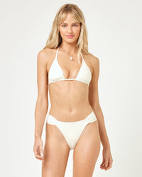 - Triangle Top - Adjustable Tie At Neck - Back Tie - Eco Rib Fabric - Fabric Content: 85% Recycled Polyamide | 15% Spandex - Unsure of your size? No worries! We recommend sizing up in our swim to get that perfect, feel-good fit. - Style # EOSOT25 FIT - Coverage: Minimal - Support: Minimal - Adjustability: Adjustable Tie At Neck and Back - Model Measurements: Lura, size S - Height 5'9, Bust 32", Waist 24", Hips 34"