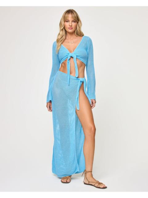 Get ready to show off those beautiful legs thanks to the ultra-elongated side slit of the Soliel Sarong. This ankle length skirt brings a punch of ocean-inspired color with an open-knit crochet fabric and sexy little side tie at the hip. Wear it with the coordinating Los Cabos Top for a matching set moment. - Ankle length - Tie at hip - Coast is clear knit - 100% Cotton FIT - Model Measurements: Jocelyn, size S - Height 5’9”, Bust 32", Waist 24", Hips 34"