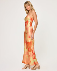 Give your neckline the attention it deserves in the strapless Spring in Love Dress. This midi has a low cut-out and elastic at the back. Our bold floral print adds a layer of sophistication making it perfect for a vacation or weekend getaway. - Satin - Strapless - Ankle Length Dress - Low Cutout at Back - Elastic at Back - Built-in Shelf Bra - Size XS-XL - Style # SILDR24 FIT - Model Measurements: Lura, size S - Height 5'9, Bust 32", Waist 24", Hips 34"